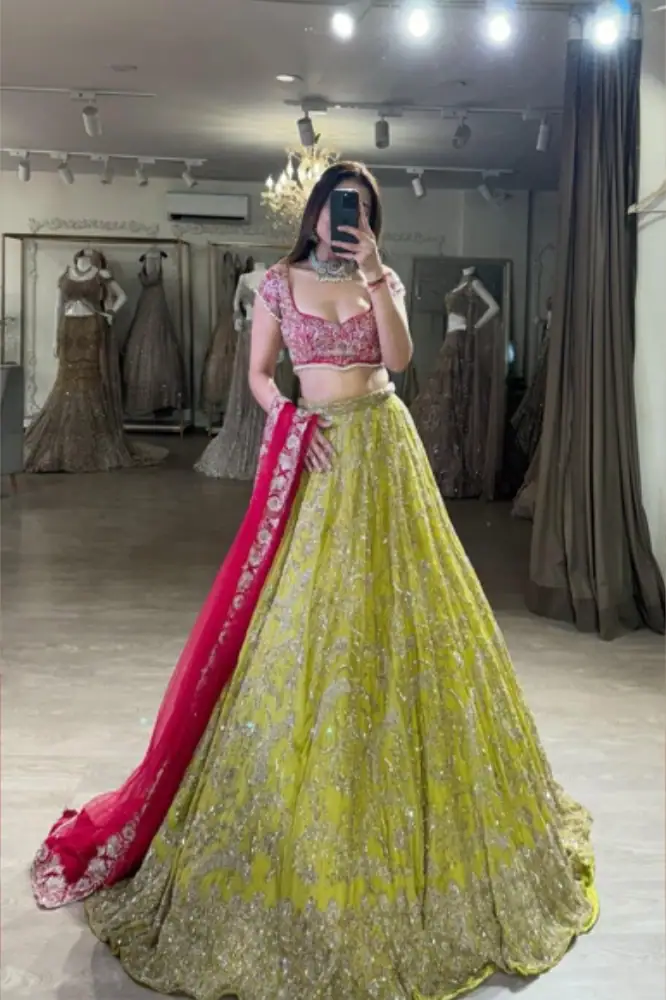 Presenting You Most Beautiful Latest Designer Lehenga Collection Code HC-987 Fabric Details Lehenga : Premium Georgette Embellished With Beautiful Shimmer