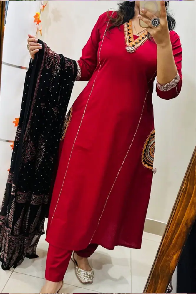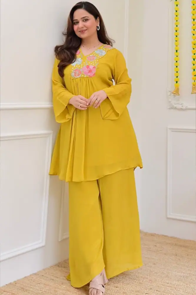 Upcoming New Ready To Wear Collection 3 Piece Fancy Kurti With Beautiful Plazzo And Dupatta fabrics Detail Kurti Fabric :-