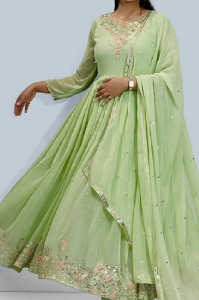 PRESENTING 3 PIECE STYLISH ANARKALI GOWN WITH BEAUTIFUL DUPATTA AND BOTTOM