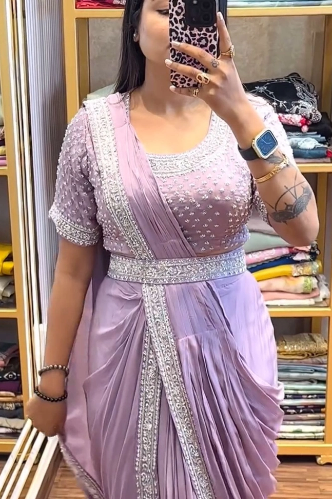 New Super Trending Embroidery cording work ready to wear saree with Embroidery Blouse