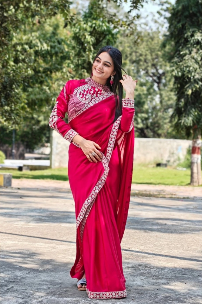 New Super Trending Embroidery Sequence work ready to wear saree with Embroidery Blouse