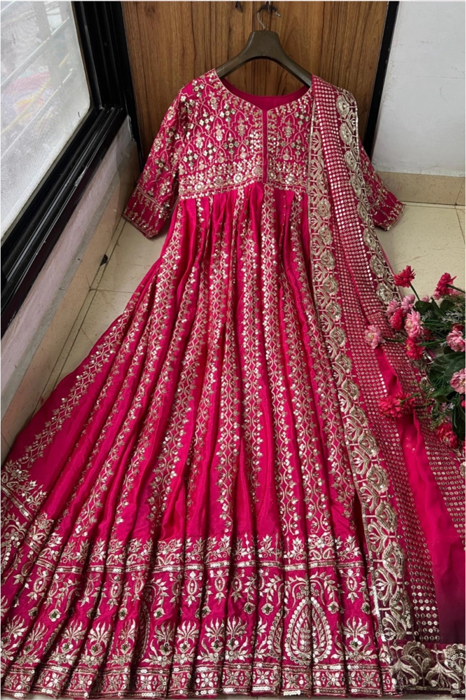 Presenting new good quality heavy sequins embroidery work anarkali style outfit in chinon silk fabric