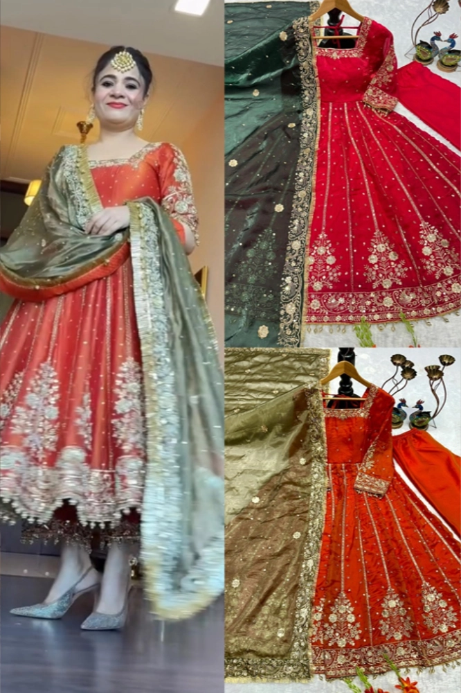 GOWN FABRIC :HAVY FRENDY SILK WITH HAVY EMBROIDERY 5MM SIQVAS WORK AND FULL SLIVE AND REDYMATE LACE