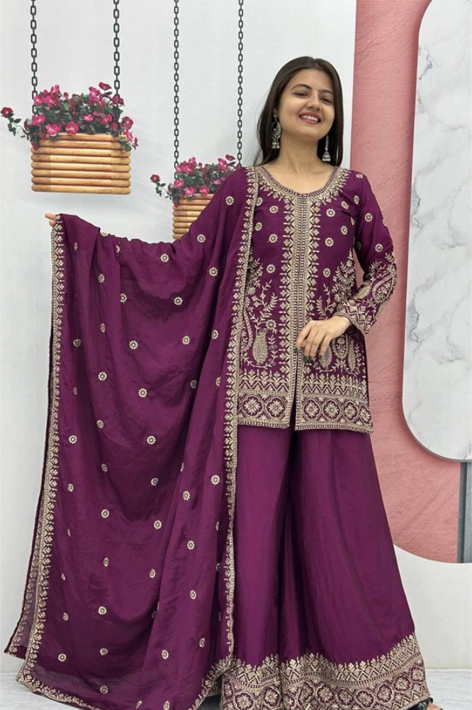 Launching New Designer Party Wear Top Plazzo & Dupatta Set