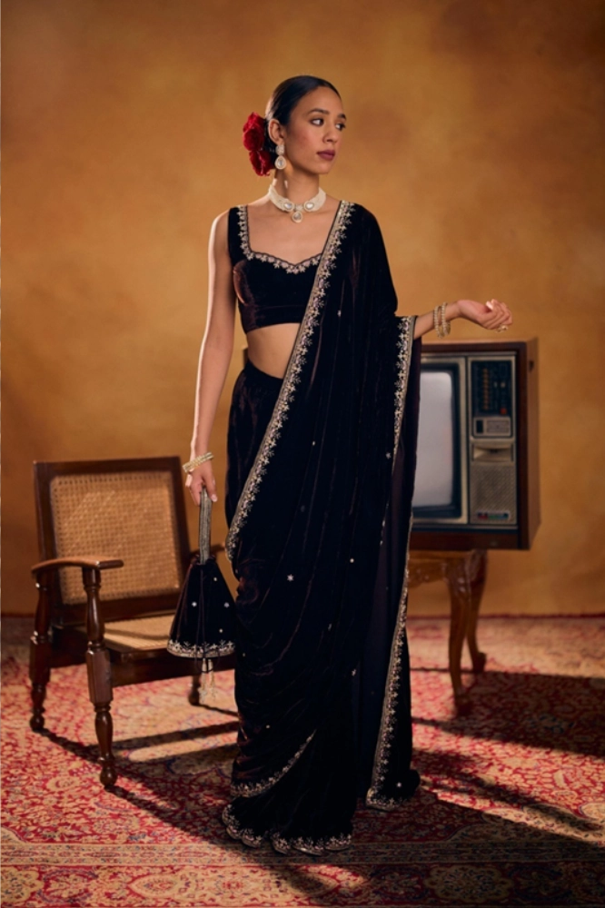 We are launching new upcomming special wedding superhit trending velvet saree with embroidered & fancy lace border with stitche blouse